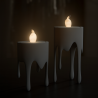 Das Design imitiert realistisch geschmolzene Wachsstrukturen – für eine stilvolle, sichere Beleuchtung ohne offene Flamme.
