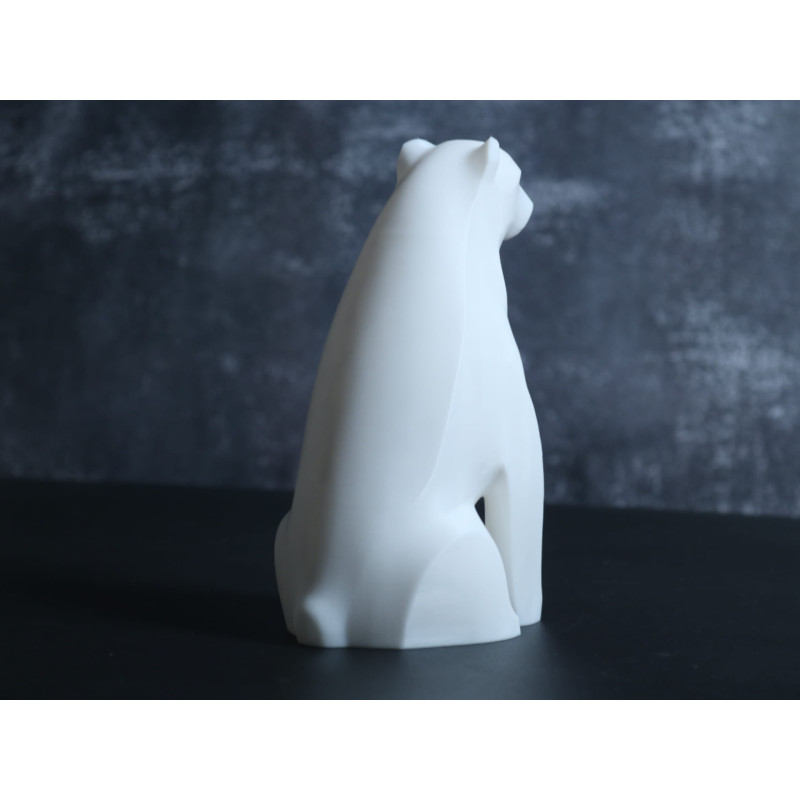 Moderne Skulptur aus hochwertigem Harz mit minimalistischem Design. Darstellung eines Eisbären als Symbol für Ruhe und Stärke.