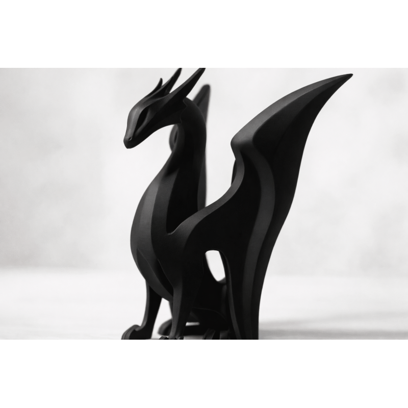 Moderne Skulptur aus hochwertigem Harz in Form eines stilisierten Drachen. Symbol für Stärke, Weisheit und Balance.
