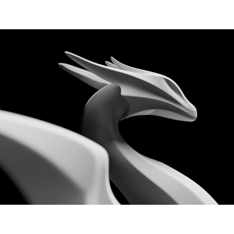 Die Drachen Skulptur zeigt eine reduzierte, moderne Interpretation eines mythischen Wesens.