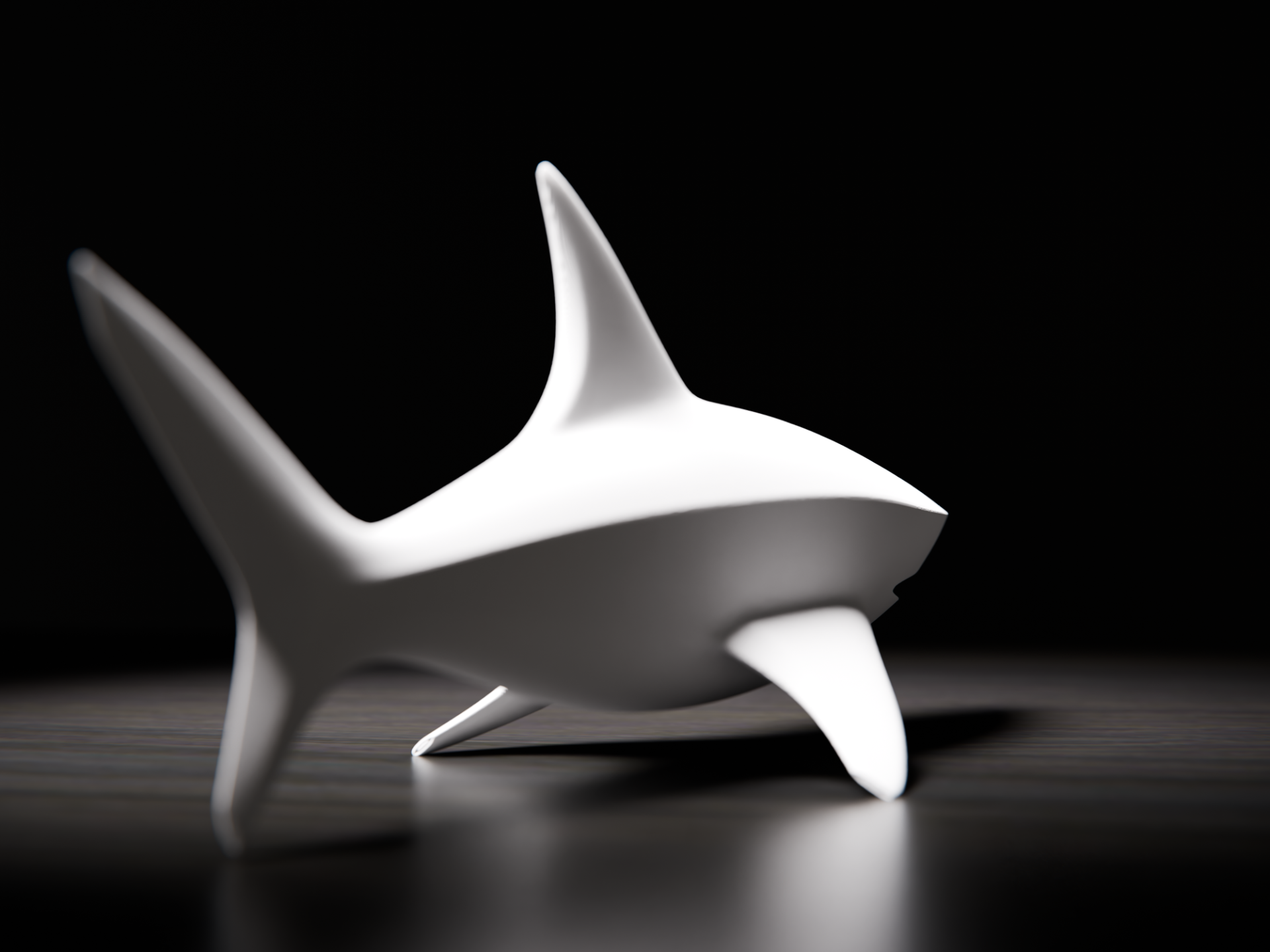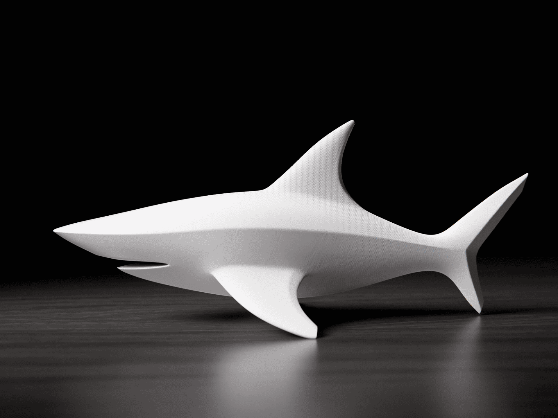 Modern resin sculpture depicting a shark with a minimalist design. A bold décor piece symbolizing strength, focus, and determination