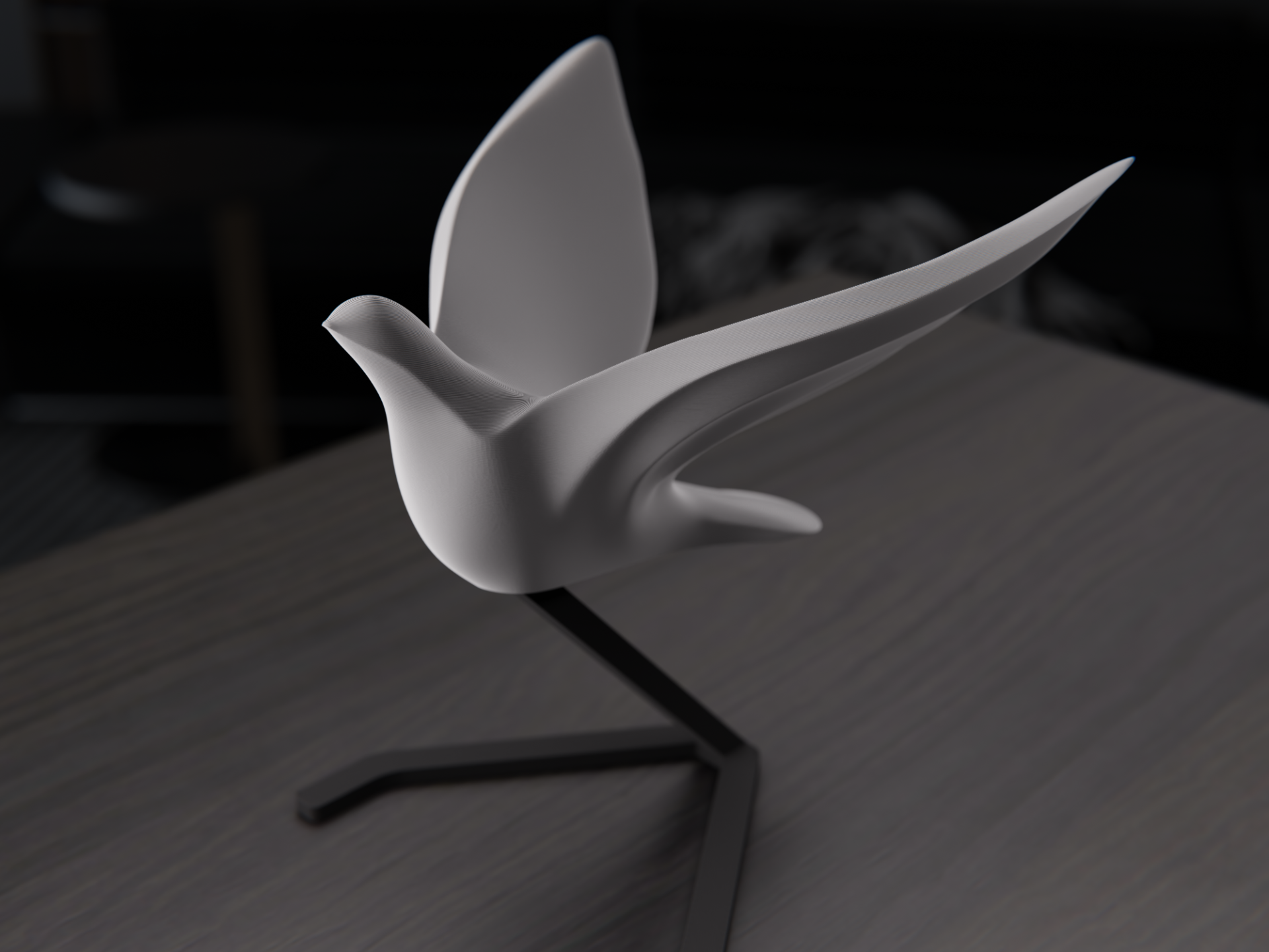 Its flowing lines and suspended posture convey lightness and movement, making it a refined decorative object.