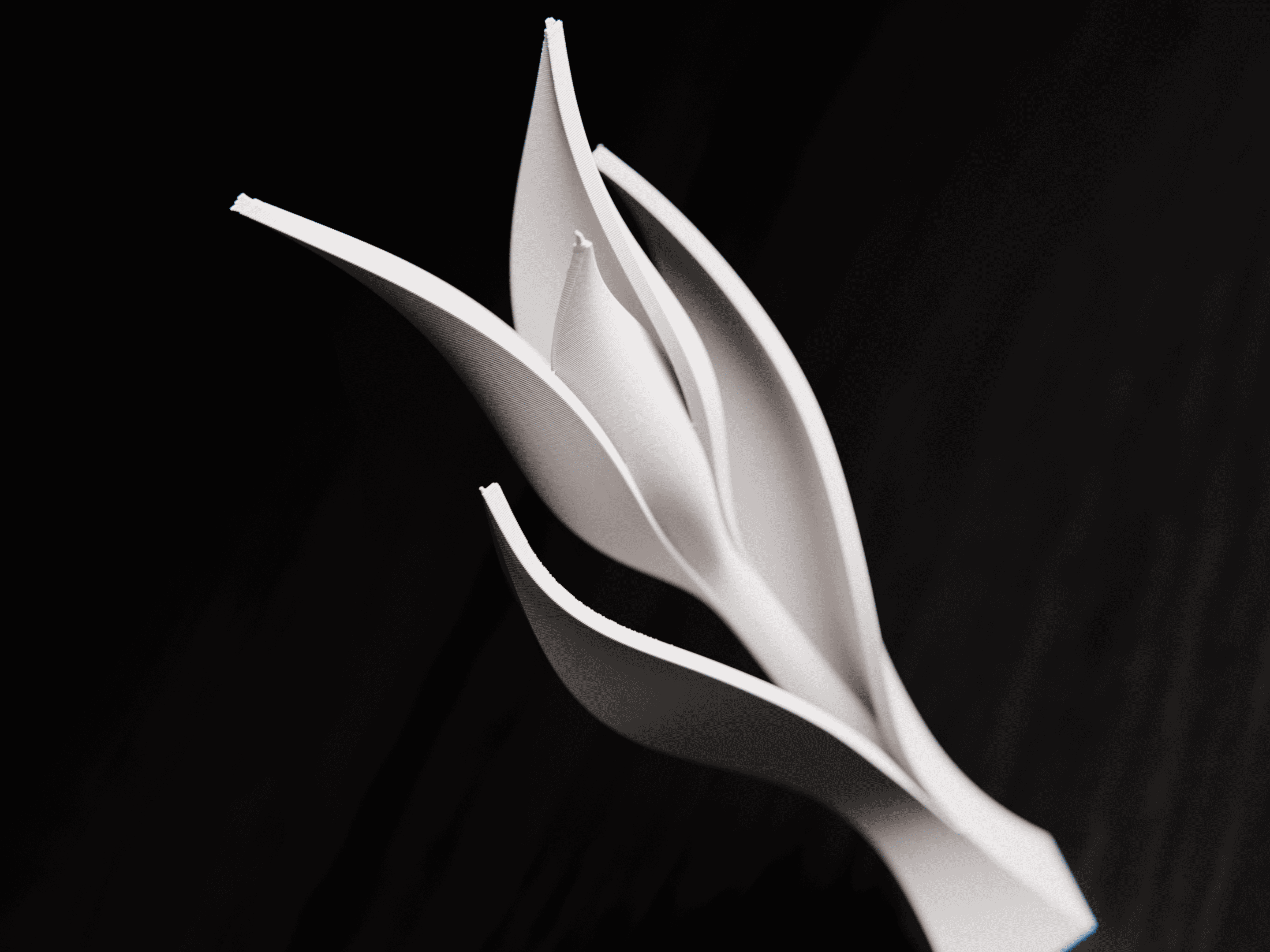 Its elongated, flowing lines rise upward like petals gently unfolding toward the light.