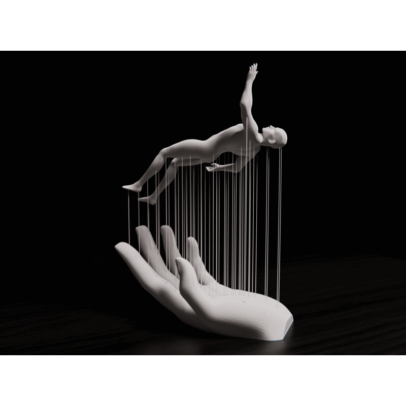 Escultura moderna en resina con fuerte significado simbólico. Representa libertad, fuerza interior y superación de límites.
