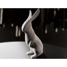 Escultura moderna en resina que representa un conejo. Decoración elegante con simbolismo de renovación y equilibrio.