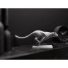 Escultura moderna en resina que representa un guepardo en posición dinámica. Decoración elegante que simboliza velocidad y control.